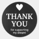Say thank you with heartfelt love to the customers who are helping you build your dream business with these black and white chalkboard image mail or package stickers which say "Thank you for supporting my dream!"