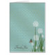 white puff flowers with butterfly on shimmering turquoise and gold polka dot background for thank you