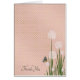 white puff flowers with butterfly on shimmering pink blush and gold polka dot background for thank you