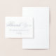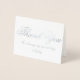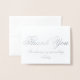 Thank You Note Card in the small 4-inch size is shown in white with a silver foiled print with a custom name sample.
