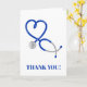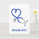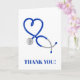 This card is perfect for saying thanks to doctors, nurses and other medical staff. It features an illustration of a blue stethoscope in a heart shape and the message Thank You! on the front. The inside of this card is blank so that you can customise it with your own special message of thanks.