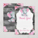 Thank You Card Girl Elephant Shower Flowers Rustic