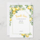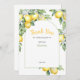 Lemon citru birthday Thank You Card, drawn in soft pastel colours in a watercolor style.