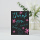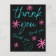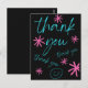 Say "thank you" for any occasion with this decorative black, bright blue and pink-colored card with pink stars and a smiley face.