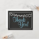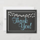 Thank you card that features a clean black chalkboard background with an editable colour and font, square outline accented by hanging lights. A unique thank you card that matches my invitations perfectly. One that will sure impress.