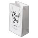 This modern and stylish, black and white retail shopping bag features the words "thank you" in trendy, handwritten script typography. Add your business or company name and website or other info for a bag your corporate customers will want to show off.