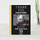 Thank you Coach Yellow Football Player Team Photo Card. Add coach`s name, player name, team, number and player`s photo. The text is trendy white and grey typography on a black background with yellow stripe.