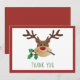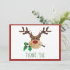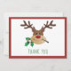 Thank You Cute Reindeer Mistletoe Red Green Card