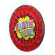 This is so good had this made for an employee who was retiring. Was able to put the staff photo in the middle and even put icons of his job role around the dart board.