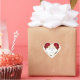 This is a thank-you wedding favour sticker. It features a golden heart with the custom white text "Thank You." You can change the colour of the background as well text and personalise it according to your needs.