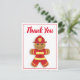 A flat thank you card for firefighters. The card shows a gingerbread firefighter in a red helmet and uniform. The back of the card has customisable text, where you can add your message.
