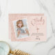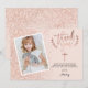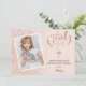 A modern, original and simple faux rose gold glitter ombre thank you first communion with cross invitation on a fully customisable blush pink colour background. Upload your photo.
