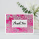 3.5" x 5" Thank you note card, semi-gloss finish, squared corners, plus envelopes. FRONT: pink alcohol ink-designed background. BACK: blank for messages.