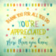 Thank you for all you do, you're appreciated more then you know tag colourful designed by The Arty Apples Limited