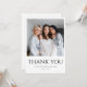 This elegant thank you card features a customisable photo slot at the top, perfect for adding a personal touch with your favourite picture. Below the photo, the words "Thank You" are beautifully printed in a stylish font, expressing your gratitude with grace and warmth. There's also a designated space beneath the "Thank You" message to personalise the card, making it a heartfelt keepsake they'll cherish. Ideal for any occasion where you want to show appreciation, this card combines visual appeal with a personal touch.