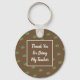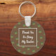Thank your teacher for all they do whether it is during the holidays, at the end of the year, or just because. Green and brown maple leaves provide the background for this thank you keychain. The leaves stand out against a dark brown background that can be customised to suit your needs. The centre of the keychain features a solid brown square to support your words of appreciation. "Thank you for being my teacher" can easily be customised to suit your needs.