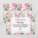 Beautiful Pink Watercolor Roses and bright greenery pattern framing the thank you card details. The back of card features the same pattern. Update and personalise with you custom thank you message for your guests