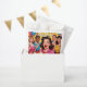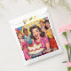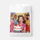 A funny retro illustration of a surprise mid-century birthday party. A woman in a pink dress holding a birthday cake. Sweet favor bags to stuff some nostalgic candy in for a vintage vibe at your birthday party!