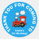 Personalised Thank you for coming Birthday party favour stickers. Funny red toy choo choo train design for little conductors. Railway theme thank you labels with customisable background colour. ie soft yellow, grey, purple, light blue or girly pastel pink. Suitable for boys and girls. Adorable typography design with locomotive for Birthday thank you favours. Also handy as baby shower envelope seals / sealers to say thanks for coming or thank you for sharing our special day!