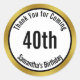 You can edit the text to show a custom birthday message. It will appear in a white circle with black and gold border. The gold look border is not foil. (Shown: Thank You for Coming 40th Samantha's Birthday)