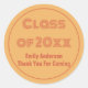 Thank You For Coming Grad Name Orange Graduation Classic Round Sticker