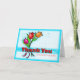 This Happy fun and colorful card is a perfect card for your "Thank You" wishes. In this fun drawing are bright Lush bunch of flowers in pink red and orange on a vibrant blue background with stars and "THANK YOU" greeting on the front.