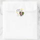 Create unique personalised white and gold Thank You stickers for the Graduation party favours or mailing sealings with an elegant design that features a photo in a heart shape, the Graduate's name, and year. Use the template to type the Graduate's name and year and upload a picture. Grad's cap and diploma illustrations decorate the design.