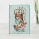 This colourful Thank You Card features a watercolor painting of a woman wearing a crown and a mask on a sea foam green distressed background. On the inside left there is an all over background pattern with coordinating corona virus images. On the right side the text says "Thank you for all the helpful things you did for me as I recovered from Covid-19. Your kindness made a huge difference!"