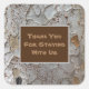 Cabin and vacation rentals are becoming more and more popular. Set your rental apart and make it extra memorable with this rustic appreciation sticker. These square stickers feature a close-up photo of tree bark that is adorned with an abstract pattern. The light grey background of the tree trunk if dotted with golden brown and red spots along with wavy lines of dark grey. The centre square provides a solid background colour for your words of thanks to your house guests. "Thank You For Staying With Us" can quickly and easily be customised to suit your needs.