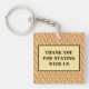 House rentals are becoming more and more popular and competitive. Set your rental apart from your competition with this "thank you for staying with us" keychain. This guest key keychain features a background of a light brown textured pattern. Quickly and easily customise the text if you desire.