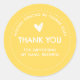 Express your gratitude with this charming thank-you sticker, featuring the phrase 'Thank you for supporting my small business' in a casual, friendly Chelsea Market font. Set on a mustard yellow background, the text is accented by a delicate heart illustration and a subtle ring of dotted details, giving it a warm and welcoming feel. Perfect for adding a personal touch to packages, this sticker is a beautiful way to show appreciation for your customers' support.