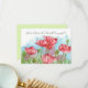 A pretty floral birthday gift thank you card decorated with bright pink poppy wildflowers and spring green stems with touches of a turquoise sky hand painted with watercolor. On the back is a shade of spring green. Customise all text to fit your needs. Find matching stickers, napkins, and more in my shop.