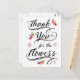 Thank those who have sent flowers to the funeral of a loved one with this unique calligraphy style card featuring the message in black letters, "Thank you for the flowers", on white background with colourful floral accents.