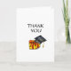 This design shows a yellow wrapped gift with a red ribbon. On top of the gift lays a Graduation Hat to symbolise, that the Thank you not is for a graduation gift. Thank you so much for celebrating my graduation with me and for the thoughtful gif The design is a repro of my hand drawn illustration