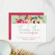 Colourful watercolors boho flowers border bouquet. Thank you for your friendship-script typography in light green and deep pink background.