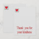 Lovely Thank you card adorned with a heart and message that says "Thank you for your kindness".