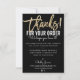 THANK YOU FOR YOUR ORDER insert modern black gold Card