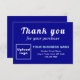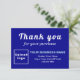 Thank you card, one of the business marketing materials to appreciate the purchase of your customers or clients supporting your business. Card design is light blue and white texts on blue background. Contents are your business logo, business or company name, address, phone number and thank you for your purchase texts. Please check the appearance after uploading logo and typing texts. If the appearance is pleasing to you, you can place your order now. If you need to resize and move the logo and texts to fit on this thank you card or on other sizes that you will choose, please change in the design tool. You can also make other changes according to your preference in the design tool such as changing the card colour, font colour and font style. Say thank you to your customers. Advertise also your business. Promote your brand name. Build brand name awareness.