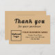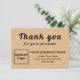 Thank you card, one of the business marketing materials to appreciate the purchase of your customers or clients supporting your business. Card design is dark brown and black texts on light brown background. Contents are your business logo, business or company name, address, phone number and thank you for your purchase texts. Please check the appearance after uploading logo and typing texts. If the appearance is pleasing to you, you can place your order now. If you need to resize and move the logo and texts to fit on this thank you card or on other sizes that you will choose, please change in the design tool. You can also make other changes according to your preference in the design tool such as changing the card colour, font colour and font style. Say thank you to your customers. Advertise also your business. Promote your brand name. Build brand name awareness.