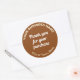 Thank you for your purchase, a message to appreciate the purchase of your customer. Customisable sticker that you can put your business name and with message Thank you for your purchase. Designs are light brown and white texts on brown background and round shape. To customise this sticker, type your business or company name, city or town and state then check the appearance. If the appearance is pleasing to you, you can place your order now. If you need to resize and move the texts to fit on this sticker or on other sizes that you will choose, please change in the design tool. You can also make other changes in the design tool according to the appearance of this sticker that you prefer such as changing the background colour, font colour and font style. Sticker to appreciate the purchase of your customer. Sticker that you can also use as marketing material to advertise your business, promote your brand name or build brand name awareness.