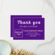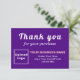 Thank you card, one of the business marketing materials to appreciate the purchase of your customers or clients supporting your business. Card design is pink and white texts on purple background. Contents are your business logo, business or company name, address, phone number and thank you for your purchase texts. Please check the appearance after uploading logo and typing texts. If the appearance is pleasing to you, you can place your order now. If you need to resize and move the logo and texts to fit on this thank you card or on other sizes that you will choose, please change in the design tool. You can also make other changes according to your preference in the design tool such as changing the card colour, font colour and font style. Say thank you to your customers. Advertise also your business. Promote your brand name. Build brand name awareness.