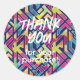 "Thank you for your purchase" stickers for your outgoing orders. Brightly coloured geometric lines and shapes. Navy blue base.