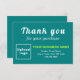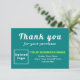 Thank you card, one of the business marketing materials to appreciate the purchase of your customers or clients supporting your business. Card design is yellow green and white texts on teal background. Contents are your business logo, business or company name, address, phone number and thank you for your purchase texts. Please check the appearance after uploading logo and typing texts. If the appearance is pleasing to you, you can place your order now. If you need to resize and move the logo and texts to fit on this thank you card or on other sizes that you will choose, please change in the design tool. You can also make other changes according to your preference in the design tool such as changing the card colour, font colour and font style. Say thank you to your customers. Advertise also your business. Promote your brand name. Build brand name awareness.