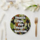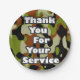 Paper Plates for Memorial and Veterans Days, green camo with white letters, "Thank you for your service."