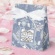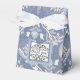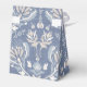 A French Country Tent Favour Box In Blue With A Floral Damask Design With A Thank You Centre