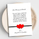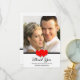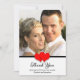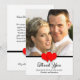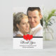 This gorgeous wedding thank you card features your photo as the centre of attention. At the bottom of your photo is a black stripe with two red hearts in the centre. Right below are the words, "Thank You" in a decorative script. Next are the words, "From the Bottom of Our Hearts" and then your names. On the back side of the flat thank you card are loving words of thanks to your family and friends. This is a heartfelt wedding thank you design your family and friends will greatly appreciate. Copyright henishouseofpaper