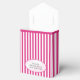 The background is a simple stripes pattern with fuchsia and white vertical stripes for an all-over geometric print. The design is suitable for all occasions, all ages, and all genders. Use these little boxes to wrap small gifts or party favours for birthdays, anniversaries, graduations, showers, and more.