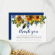 Rustic funeral thank you note on a flat card is a simple way to thank those that supported you during your time of behreavement. A simple condolence thank you note featuring a classic white background that can be changed to any colour, a rustic sunflower floral display, feathers, and a thank you template that is easy to personalise.
