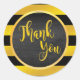 Thank You Gold Black Striped Glitter Classic Round Sticker