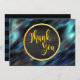 A clean thank you invitation card written in gold font on black grey striped lines will be a classic appearance .